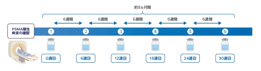- PSMAが陽性かどうかを、事前に「PSMA-PET検査」(PSMAの有無を画像で確認する検査)を行い、PSMAが陽性であることを確認します。